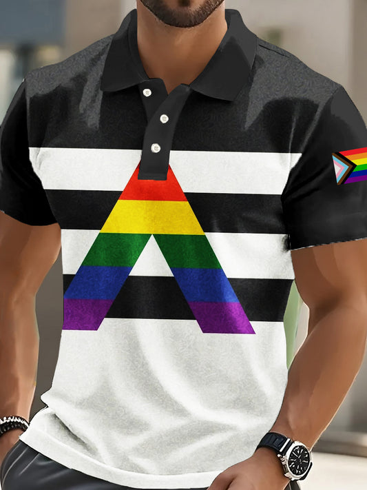 • Men's Abstract Gradient Stripe Art Print Casual Business Polo Shirt