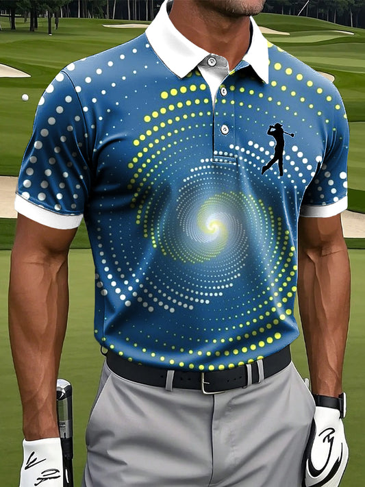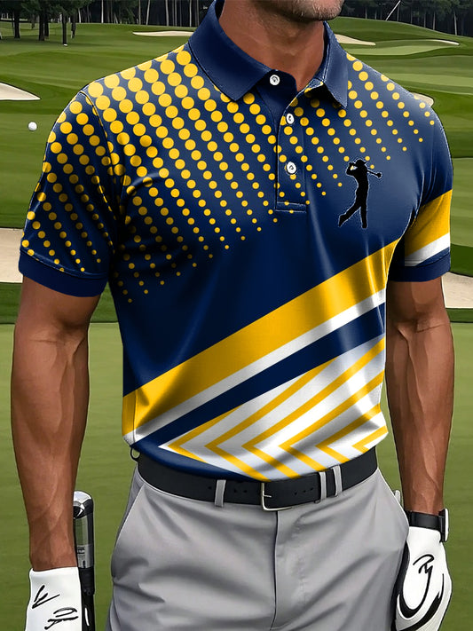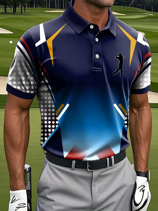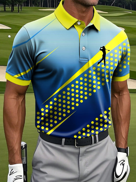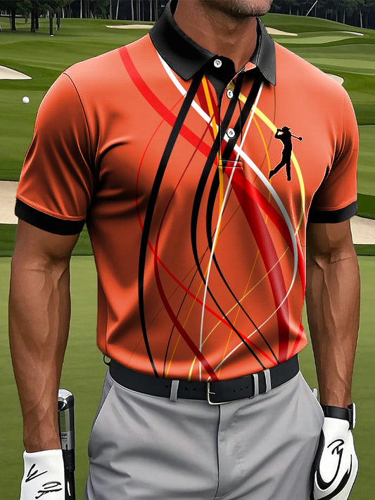 Men's Retro Golf Gradient Line Art Print Casual Polo Shirt