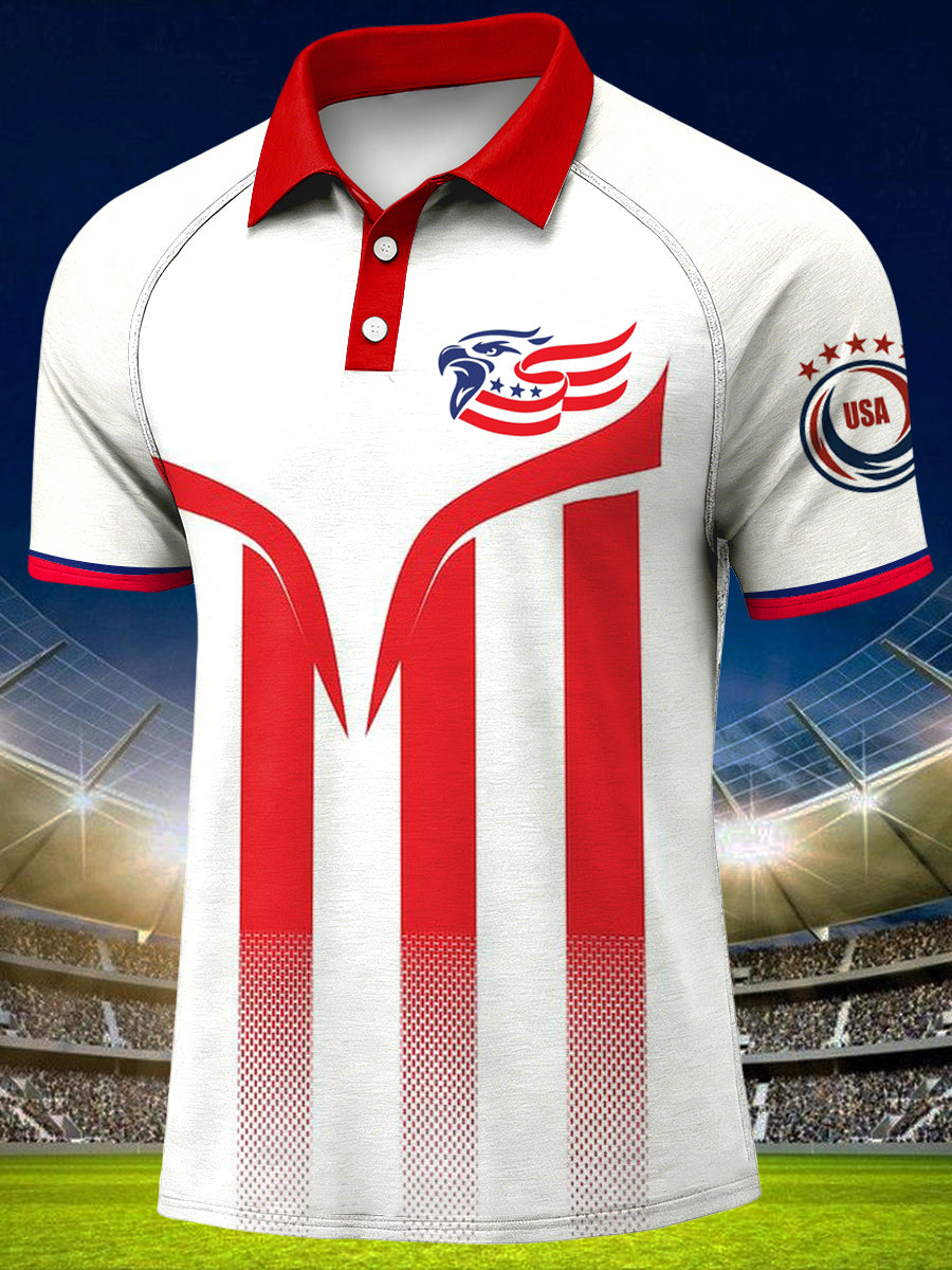 Men's America 250th Anniversary Print Polo Collar Casual Short Sleeved Shirt