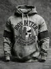 Retro Old Fuckers Club Skull Flag Patchwork Casual Hoodie